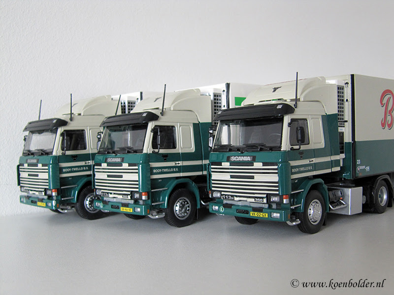 van de nieuwe Tekno modellen van Booy Twello. Voor deze modellen ontwikkelde Tekno o.a. een nieuwe achterbumper en nieuwe palletkist. Er zijn 3 verschillende trekkers en opleggers verschenen.